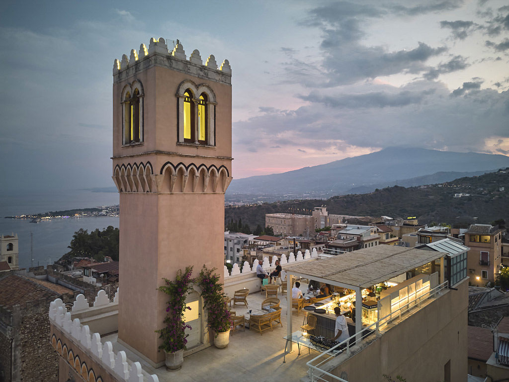Aperitivi al tramonto o occasioni speciali si arricchiscono di magia a Palazzo Vecchio Taormina. La vista panoramica del Blu Sky Bar ti farà restare senza fiato per la sua bellezza: la costa ionica, Taormina e Isola Bella danno pieno sfoggio del fascino siciliano da un esclusivo terrace bar circondato da piante mediterranee.